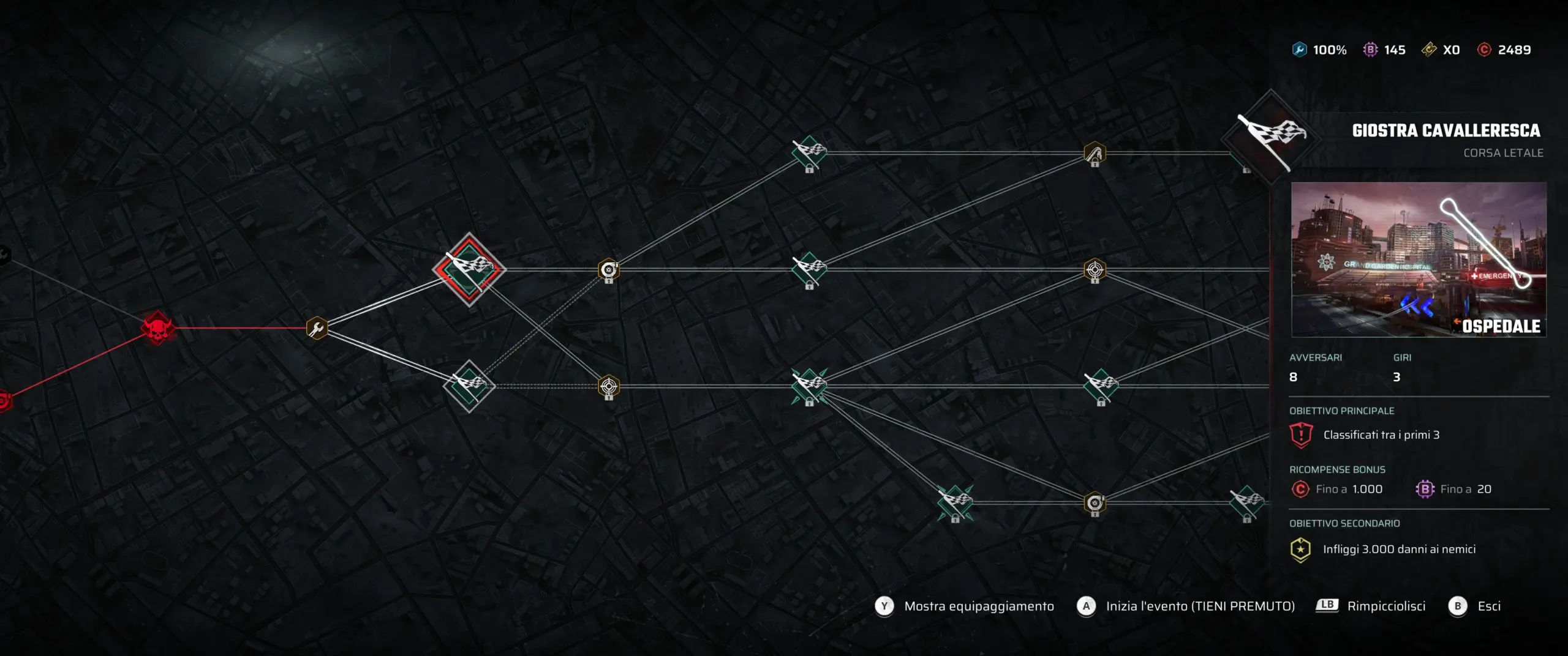 Il sistema a progressione randomica mette il giocatore di fronte a scelte strategiche sul percorso da seguire, alternando gare, visite dal meccanico per potenziare o sostituire armi e perk, eventi élite che offrono ricompense maggiori ma sono più impegnativi, e boss fight contro mastodontici camion corazzati o velocissimi veicoli speciali. Il tutto garantisce una varietà e una tensione costante, in pieno stile roguelite. Sceglierete un percorso che vi porterà in un garage a sostituire la sparapiselli che montate di base sulla vostra auto o preferirete riparare il vostro mezzo? Oserete affrontare una gara elité solo perché il tracciato vi sembra adatto alle caratteristiche del vostro veicolo o andrete sul sicuro? Ogni partita vi metterà di fronte a decine di scelte come queste.