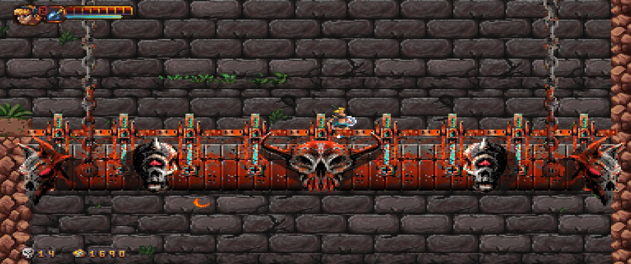 Uno degli aspetti più riusciti di Abathor è senza dubbio la varietà dei livelli: il gioco non si limita a cambiare sfondo o a introdurre nemici diversi — comunque numerosi e ben differenziati — ma costruisce ogni area attorno a meccaniche uniche che influenzano in modo tangibile l’approccio del giocatore, obbligandolo ad adattare costantemente il proprio stile.