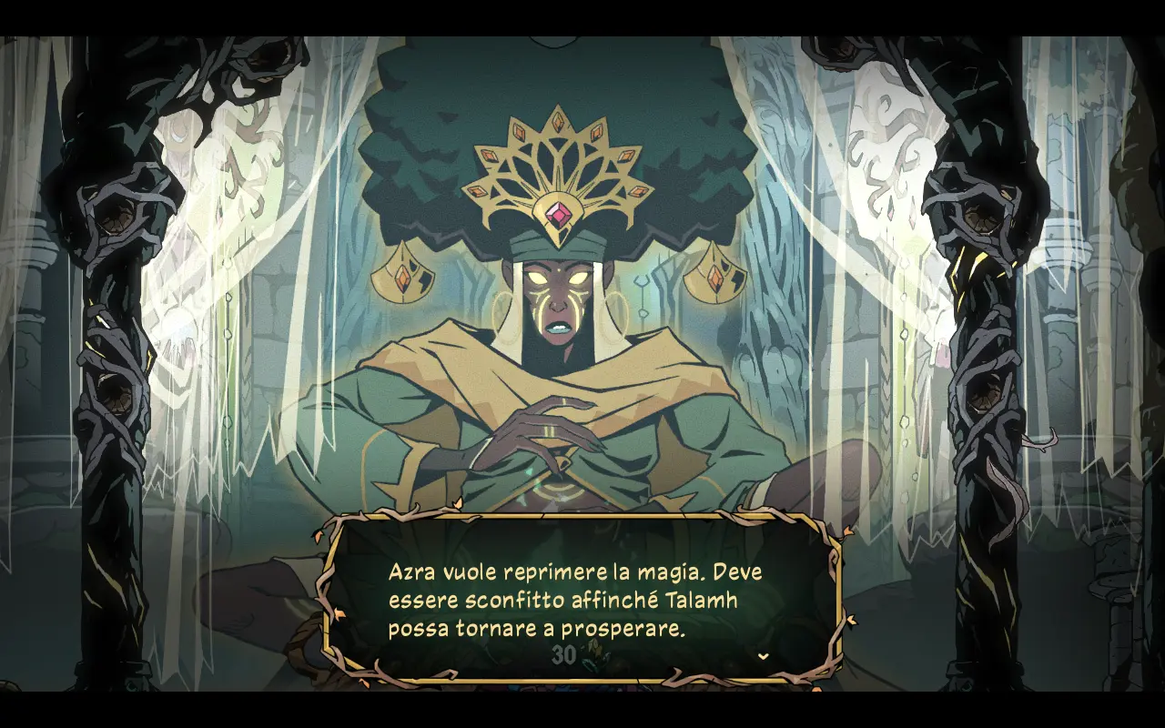La lore del mondo di gioco viene inoltre approfondita attraverso dialoghi di NPC nel Santuario che funge da hub principale, oppure tramite la voce della dea Uchawi, esaminando alcuni background specifici di determinate zone. Abbiamo apprezzato parecchio lo stile narrativo, che ci ha reso possibile capire in modo chiaro la trama di base, arricchendoci spesso con delle chicche sul passato di Talamh.