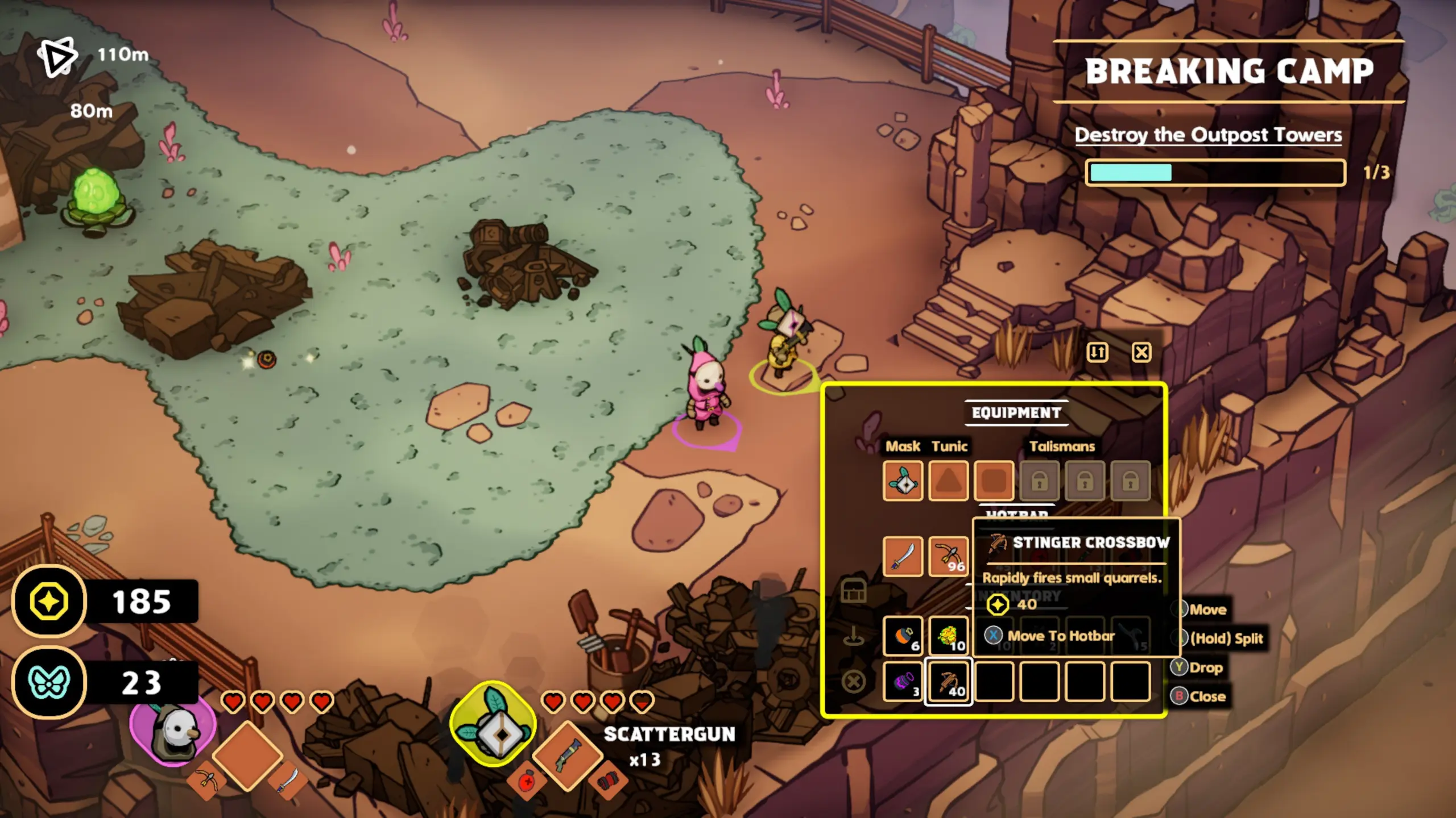 In compagnia, il gioco assume un tono completamente diverso: la collaborazione permette di sperimentare sinergie tra equipaggiamenti, coprire i punti ciechi durante gli assalti e sfruttare strategie più dinamiche. Le armi a distanza, ad esempio, risultano essere più utili quando un compagno distrae i nemici con attacchi corpo a corpo, e guidare il mecha-granchio con un amico è tutt’altra esperienza che essere accompagnati da un bot.