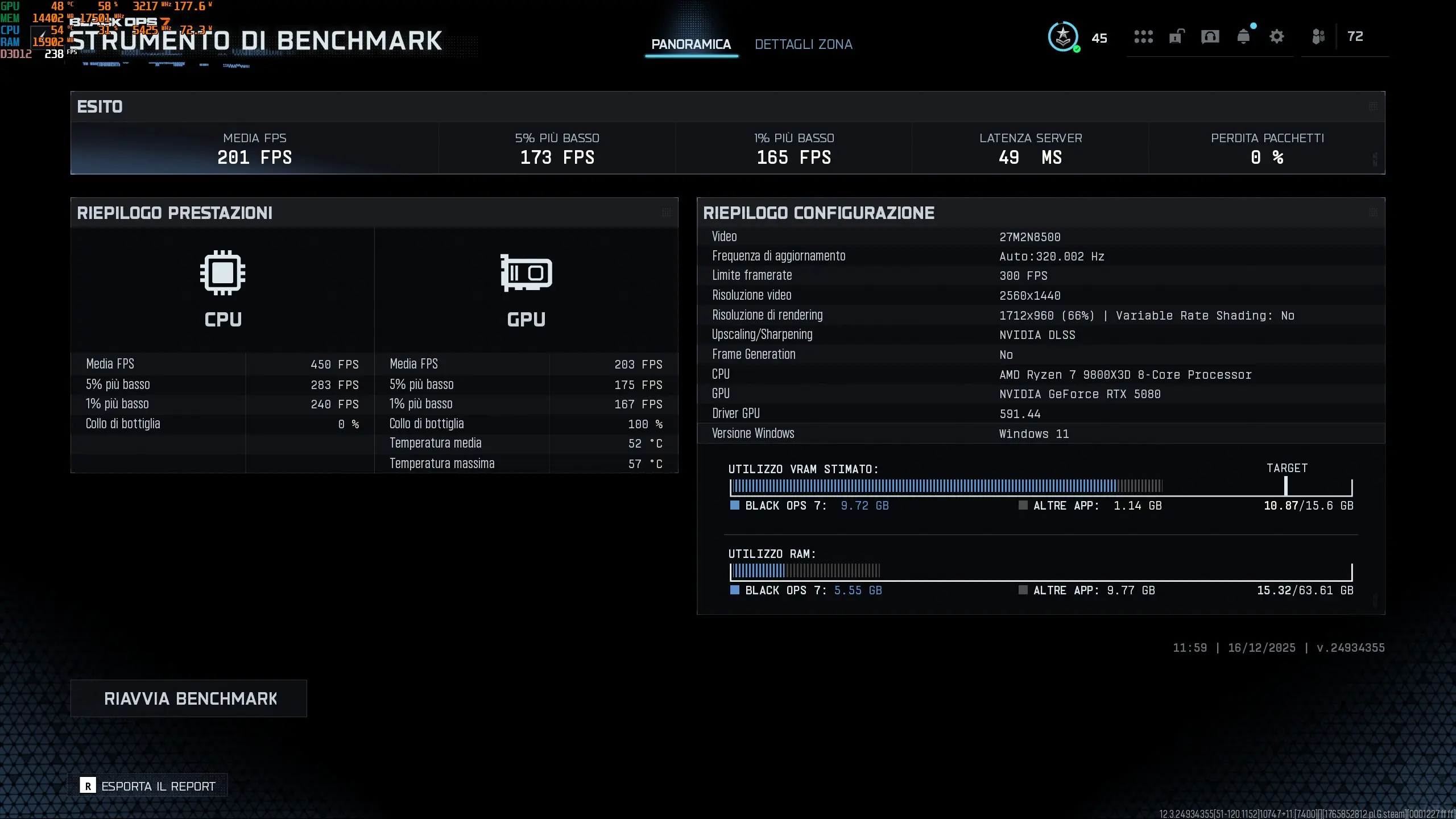 Le differenze nei benchmark sono state da subito apprezzabili, permettendoci di raggiungere uno score Legendary su 3D Mark Steel Nomad senza dover effettuare troppi tentativi. D’altro canto, durante questi benchmark abbiamo potuto osservare il power draw raggiungere i 420/425watt, un consumo che non va considerato tipico anche nell’utilizzo gaming meno complesso.