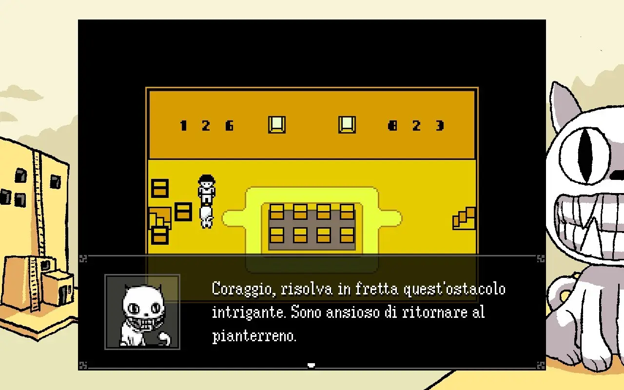 Certo, in tutti i giochi non siamo che dei burattinai che comandano a bacchetta il proprio personaggio, ma OFF si distingue per la consapevolezza che ha il protagonista nell’essere un semplice mezzo controllato da un’entità superiore a dei semplici byte. Lo stesso discorso vale anche per il Giudice, un gatto parlante che funge da guida – talvolta pure disorientandoci, a mo’ di Stregatto – e che ci accompagnerà attraverso le varie zone, mantenendo sempre il suo ruolo di narratore consapevole che sa di essere in un videogioco.