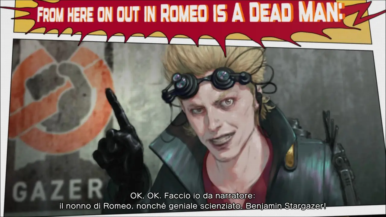 Romeo is a Dead Man si apre con la morte di Romeo e con un orrendo mostro bianco gli strappa via la faccia senza troppe cerimonie e lo lascia sul ciglio della strada a dissanguarsi, fortunatamente Benjamin Stargazer, nonno del protagonista, riesce a riportarlo in vita attraverso una delle sue invenzioni più importanti.