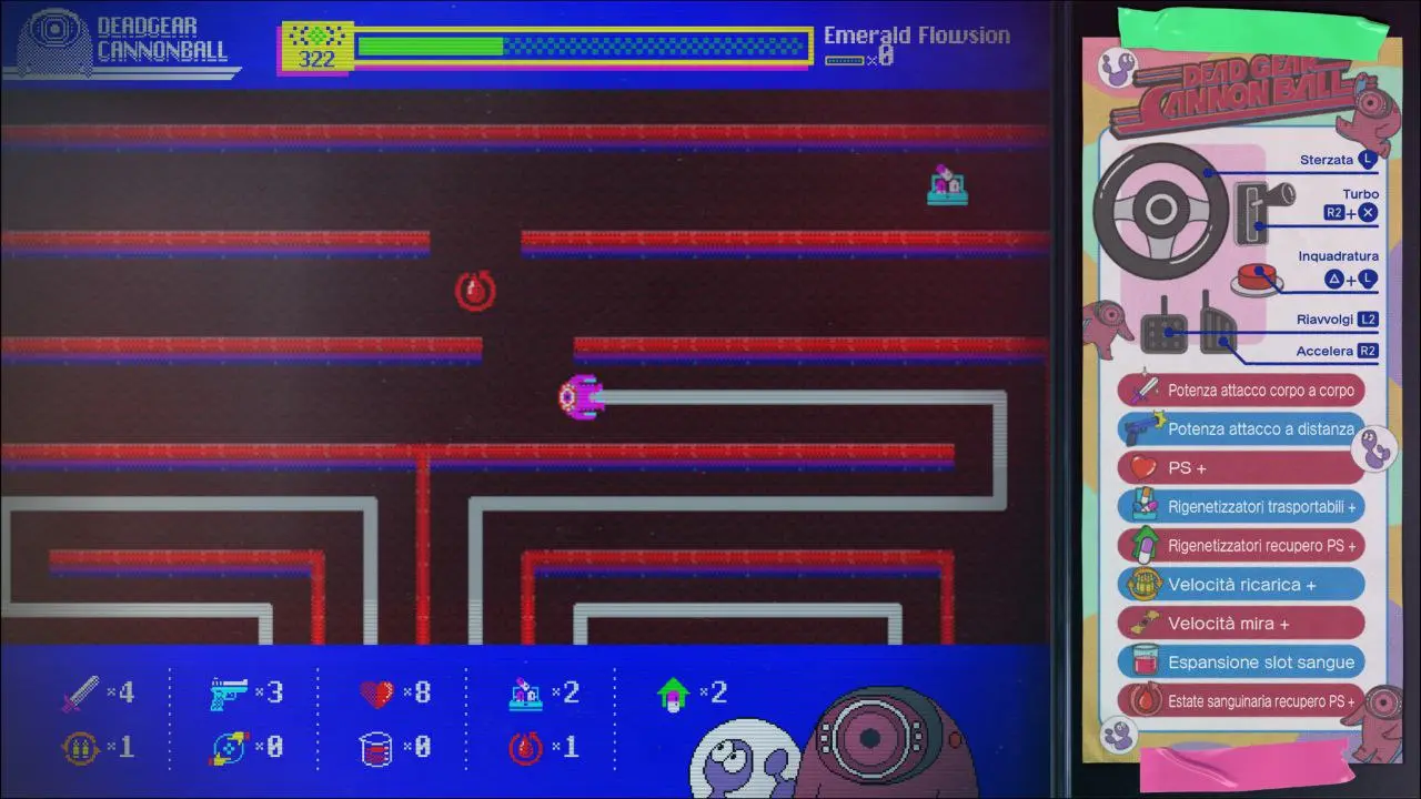 Ci troviamo infatti in uno strano labirinto in cui i piccoli nanoidi all’interno del sangue di Romeo devono raggiungere i diversi potenziamenti, che variano dal semplice aumento di statistica alla possibilità di ricaricare più velocemente le nostre armi da fuoco.